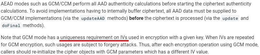 - AES GCM 암호화 할때 마다 다른 IV를 사용해야 합니다.